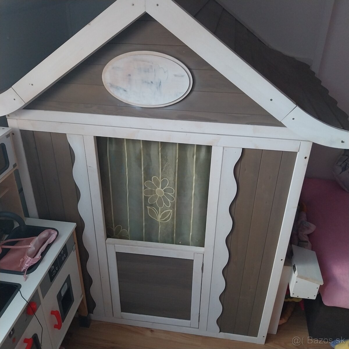 Predáme detský záhradný domček, ktorý bol iba vo vnútri, samozrejme je určený pre vonkajšie použitie. Je zachovalý a sú porobené aj záclonky. Okná a dvere sa dajú otvárať/zatvárať. Výška: 148cm, Šírka 137cm, Hĺbka 102cm, celková šírka domčeka s verandou: 176 cm. Materiál: drevo, Hrúbka: 10mm Farba: sivo-biela. Je veľmi pekný, má 2 roky. Nový stál 580eur teraz cena 220 eur. Len osobný odber.