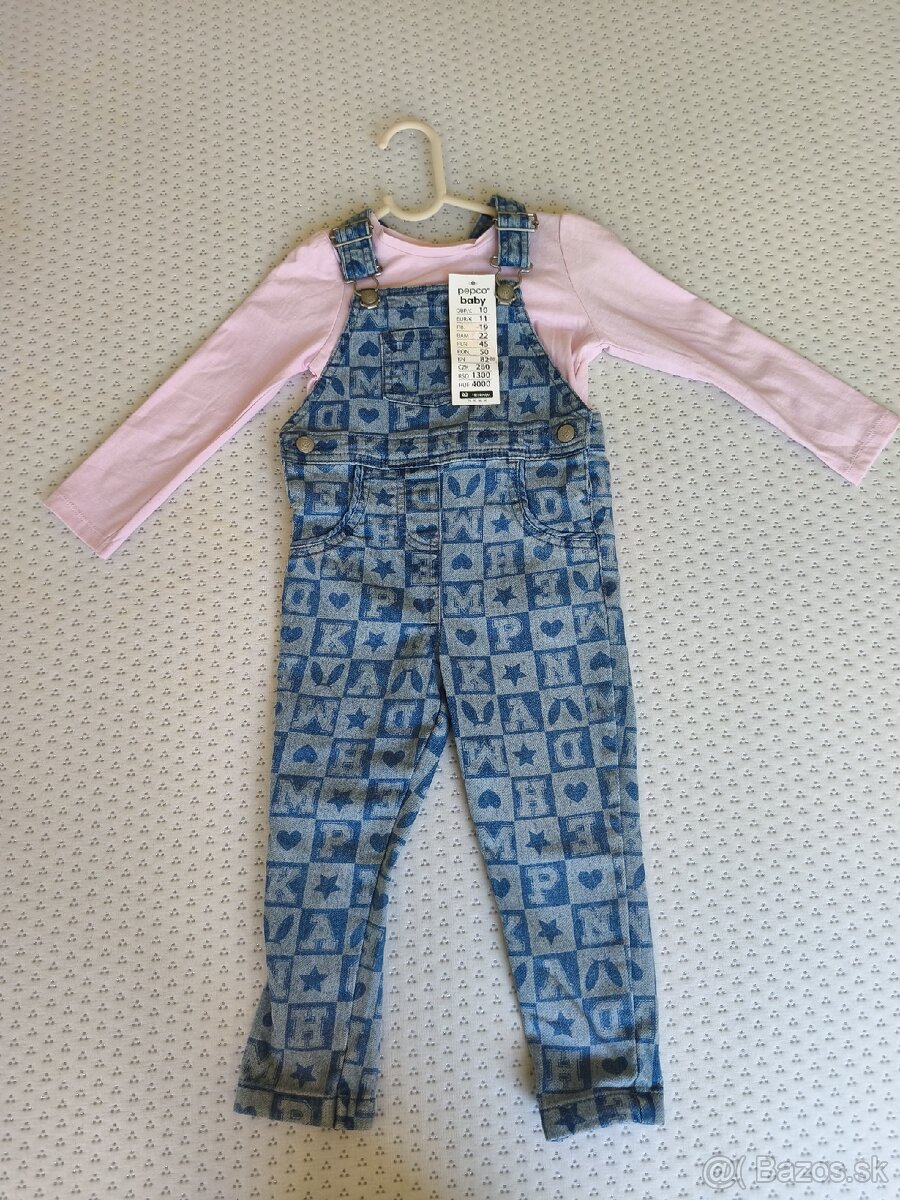 Nové dievčenské džínsy na traky+tričko, značky So Cute, veľkosť 92/ 18-24 mesiacov/.Cena 5,5€.