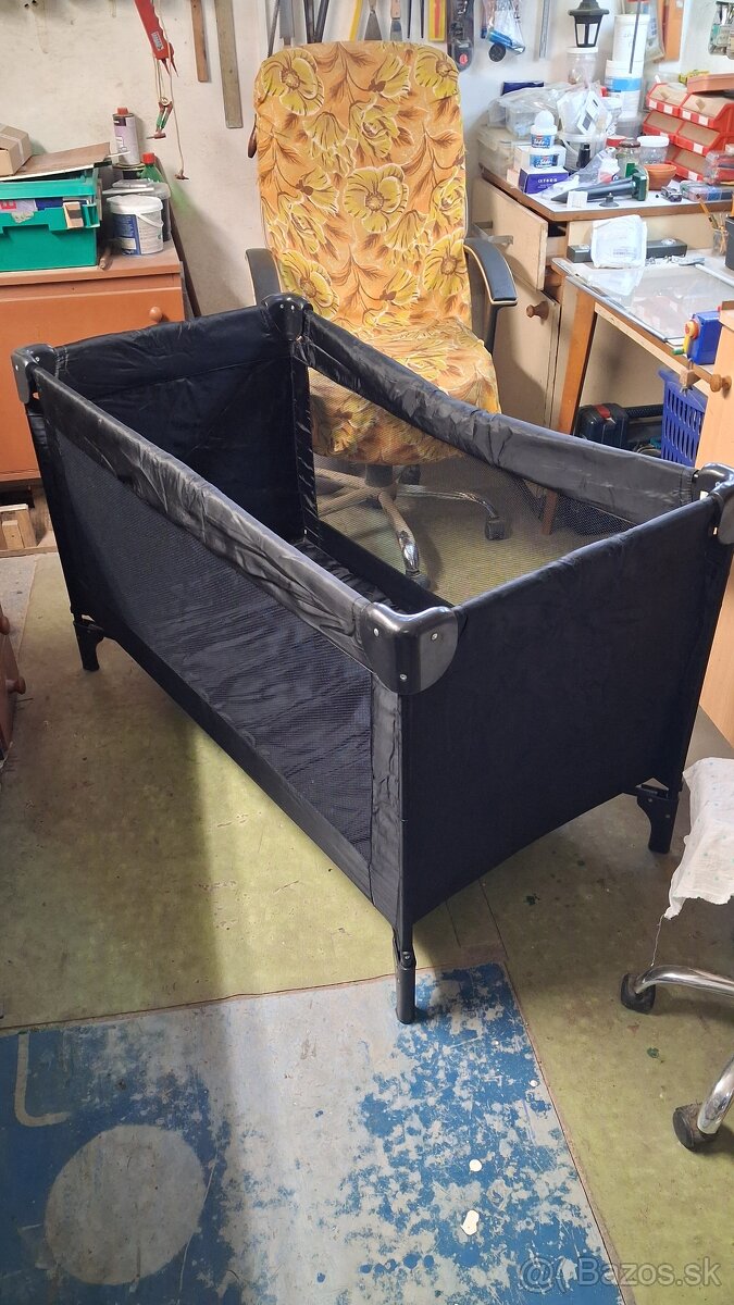 Predám detskú cestovnú postieľku, čiernu, používanú. Po oprave. Plne funkčná. Iba osobný odber Sliač, Zvolen