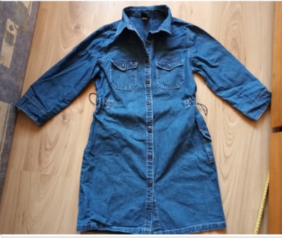 Riflové šaty na traky. - [13.11. 2025]Predám riflové šaty.Veľ. 116 / 122 cm.( 6-7 rokov ).Pás 32 cm, suknička dĺžka 29 cm, predná časť 53cm. Značka GEORGE.