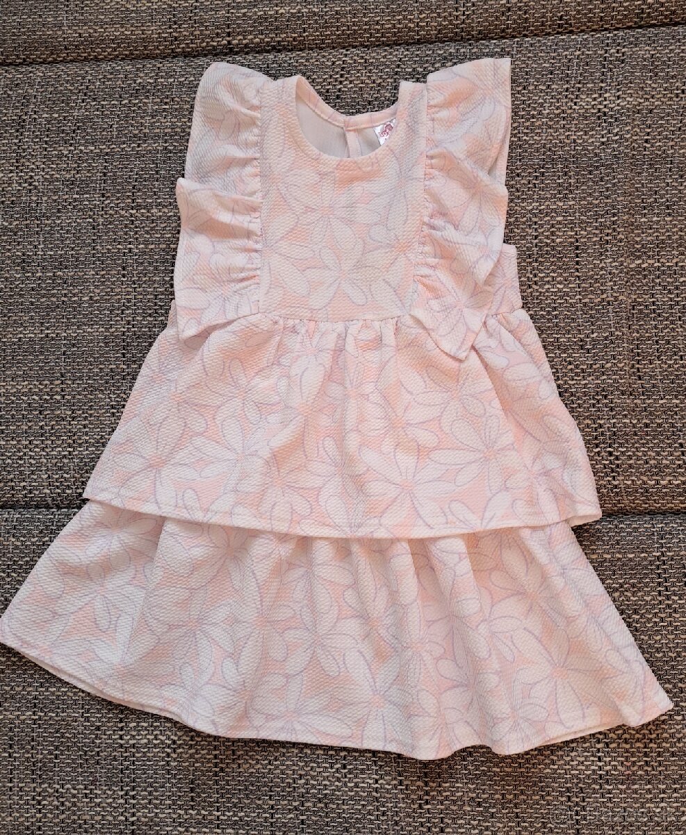 Predám slávnostné dievčenské saty s volanikmi. Velkost c. 98/ 2-3 roky. Su vo výbornom stave, bez poškodení, len raz oblečené.
