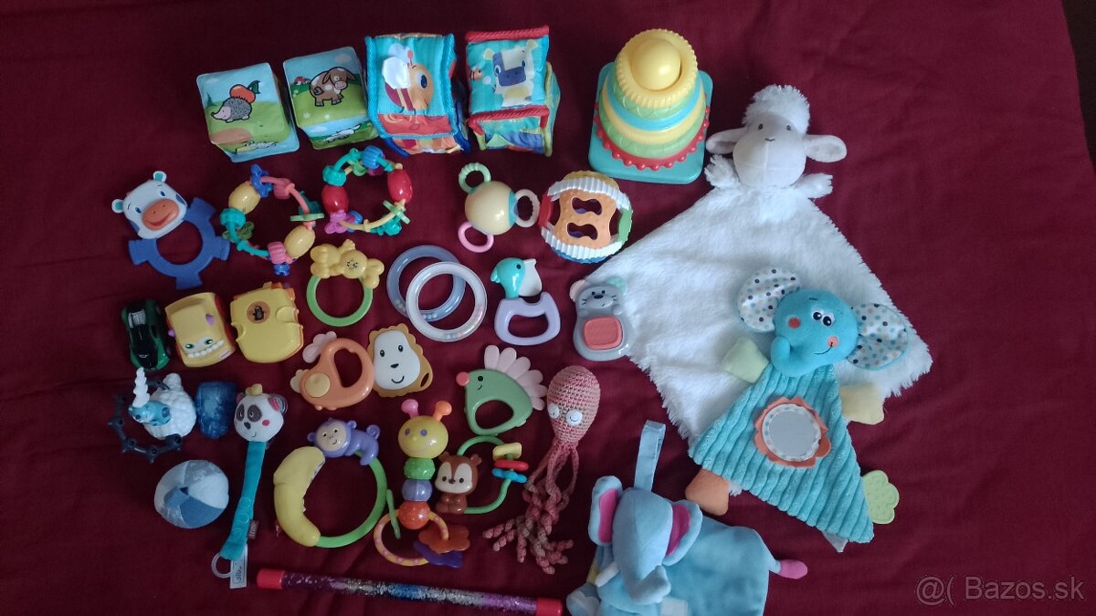 Hracky pre babatko - [2.1. 2026]Predam krasne hracky pre najmensich. Vsetko bud hrka alebo piska. A babatko si ich vie dobre chytit do ruciciek. Su tam aj knizky pre najmensich aj 2 mojkaci - macikovia. Niektore hrkalky sa daju pouzivat ako hrizatko. Plus pridavam aj penovu pismenkovu podlozku. Cena za vsetko spolu. Posielam aj po ...