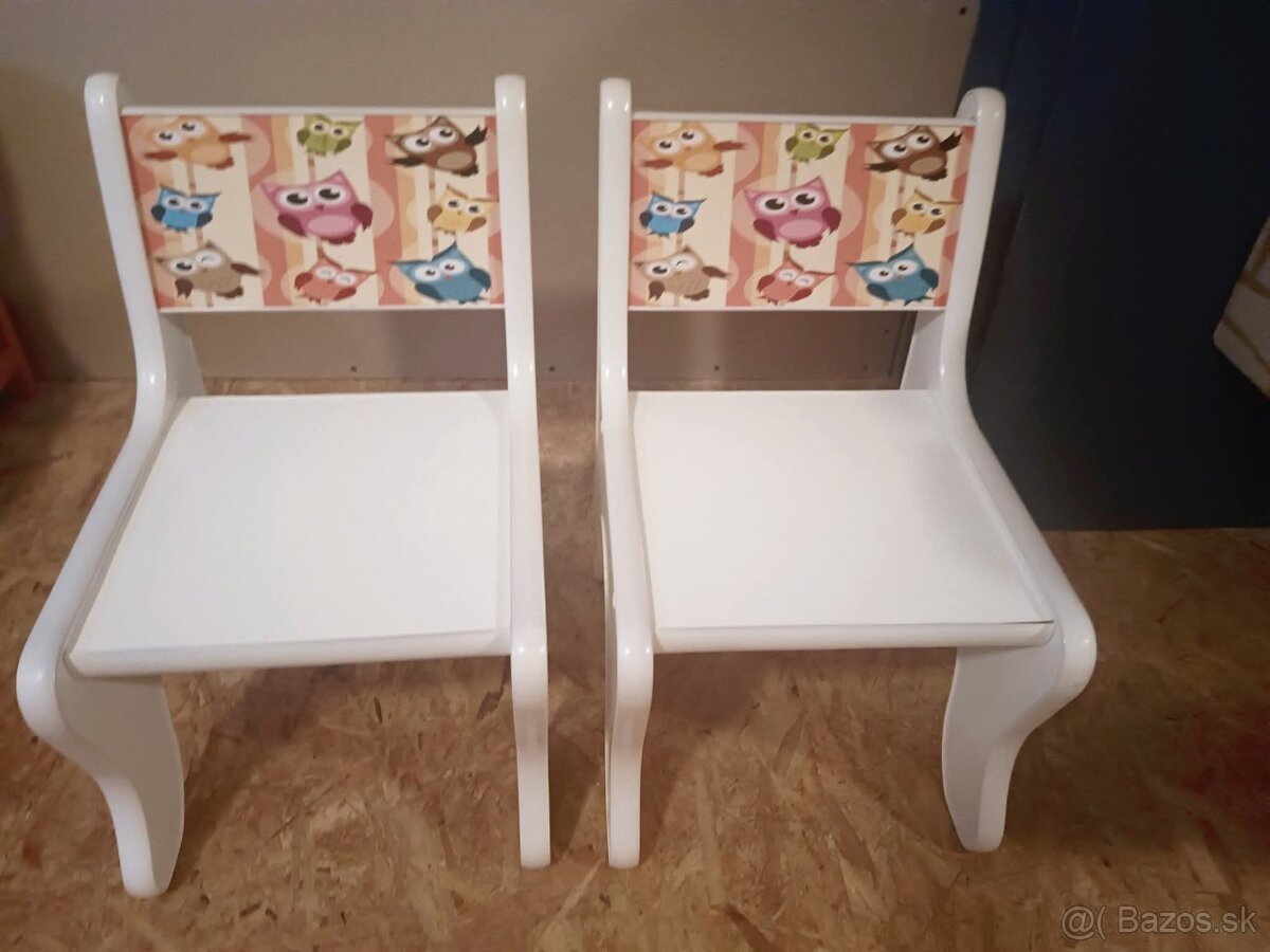 Veselé stoličky - [31.12. 2025]Detské stoličky 2ks , širka sedadla 35cm, celková dĺžka stoličky 60cm, z dreva,
