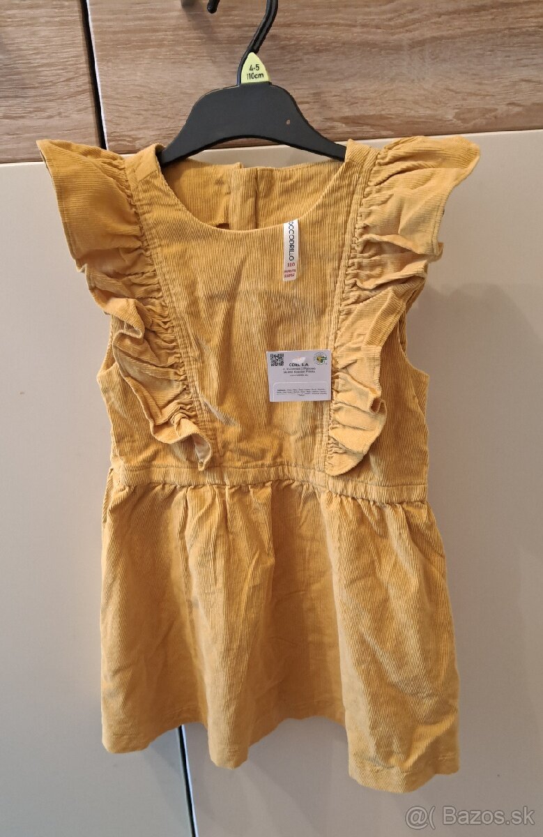 Predám nove zlte dievčenské saty zn. COCODRILLO. VELKOST 110 - 4-5 ROKOV.