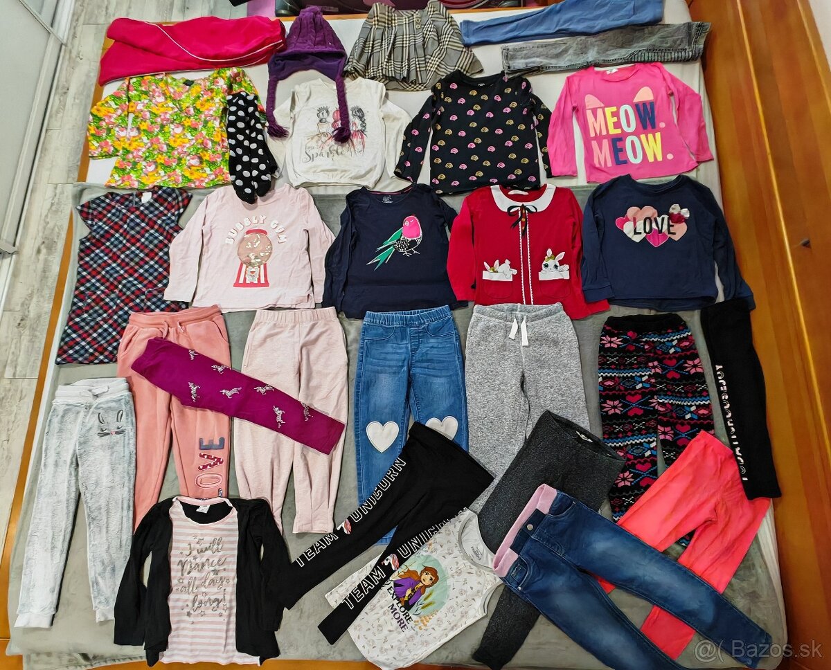Obsah balíka: rifle 4ks, legíny 5ks, sukňa, tričko 8ks, tielko, šaty, košieľka, pančuchy, zimná čiapka, šušťákové nohavice, zateplené nohavice 3ks, tepláky 2ks