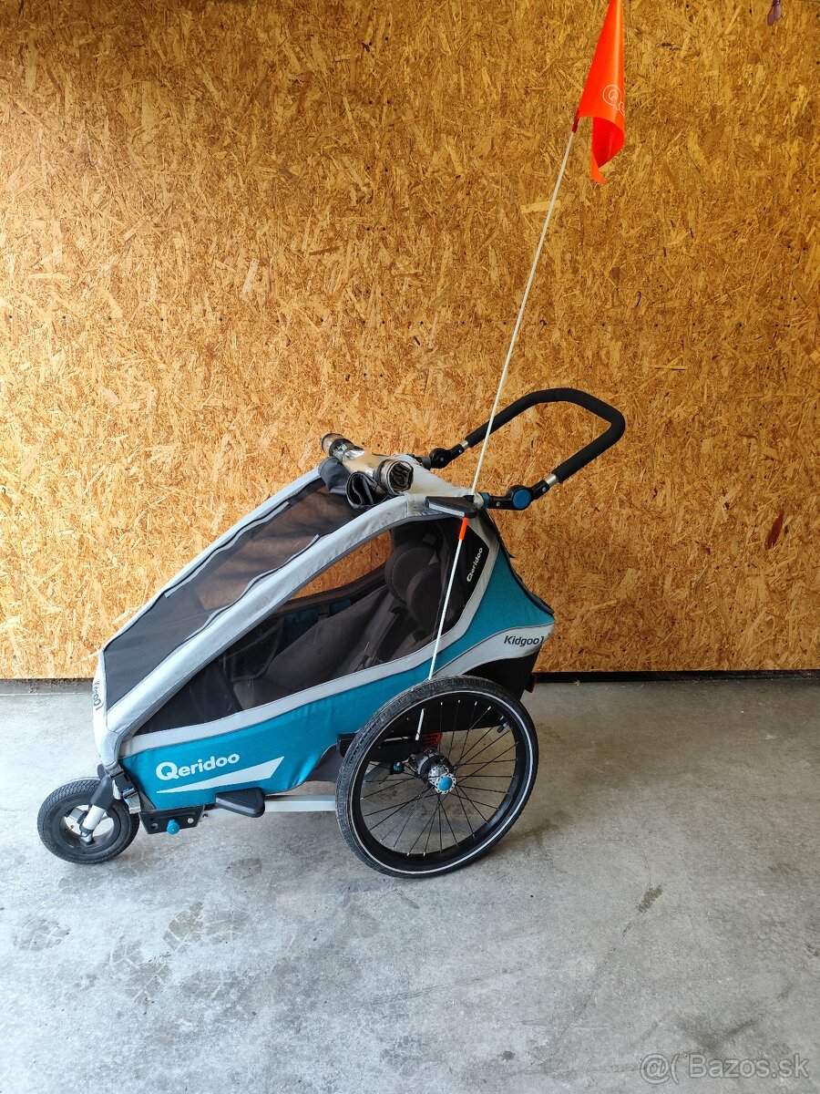Predám cyklovozik pre jedno dieťa Qeridoo Kidgoo 1 (r.2020). Používali sme ho ako cyklovozik ale aj ako kočík do terénu s veľkým úložným priestorom. Vo veľmi dobrom stave s kozmetickými vadami viď.foto natrhnuté bočné vrecká vnútri vozíka (syn sa o ne zaprel pri vstavaní z vozíka) a zopár zárezov na pene na rúčke (nezväčšujú sa a nebránia používaniu, raz sme blbo položili detský bicykel na riaditka). Super skladný, ľahko sa dajú odmontovať všetky tri kolesá. Dôvod predaja: potrebovali sme vozík pre 2 deti.