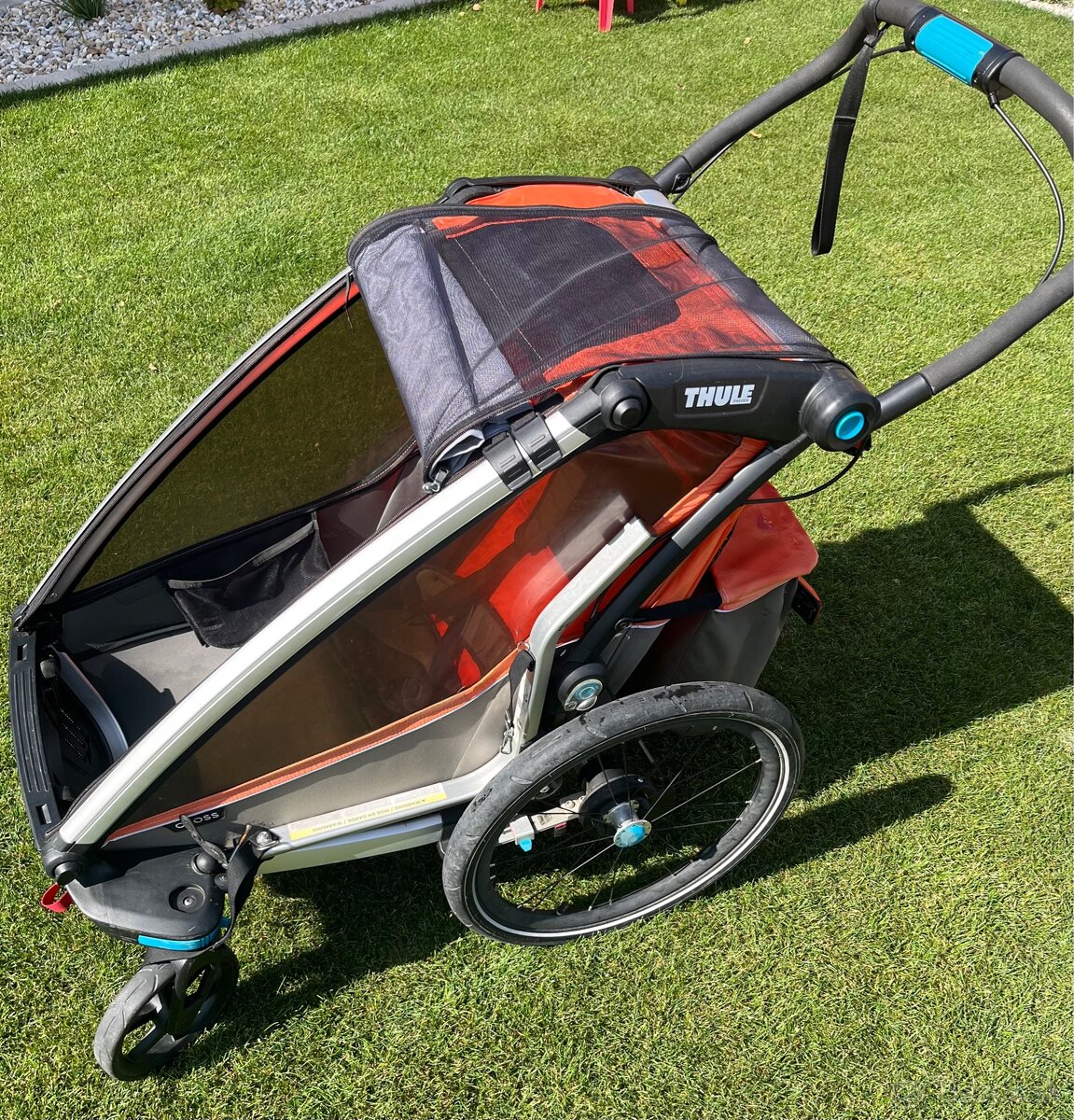 Predám ThuleChariot Cross 1 orange, detský cyklovozík možnosť využiť aj ako normálny kočík a tiež máme dopredu koleso vhodne na behanie alebo korčuľovanie a na rukovätí je brzda.