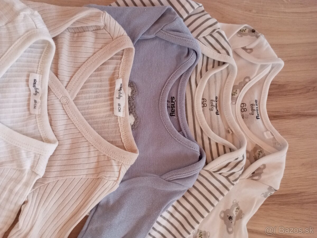 Predám 5 ks body, veľkosť 68, značka Sinsay, bavlnené. Bez žmolkov,fľakov,dier.