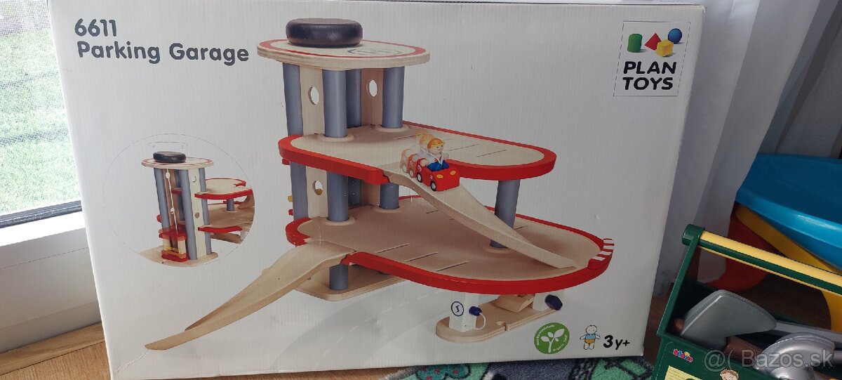 Drevena parkovacia garaz pre deti. Vyjazdy bude treba prilepit inak vypadavaju, heliport je trochu pokresleny.