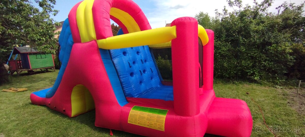 Predstavujeme Vám našu novinku, OBRIU ŠMÝKAČKU, ktorá je až 6m dlhá a skoro 3m vysoká. Disponuje s 2 veľkými šmýkalkami. Je určený až pre 4-5 detí, max. váha 1dieťaťa 45kg. Nosnosť hradu je 180kg.