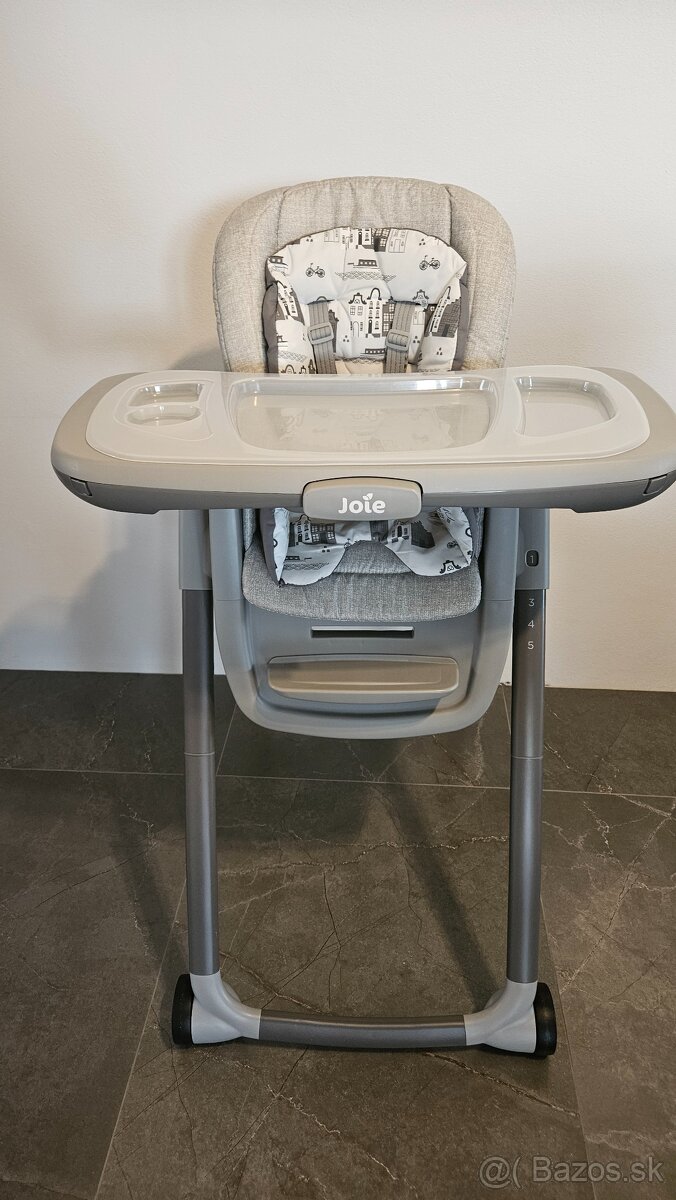 Top stav, min. používaná, (malý tam.nechcel byť) Táto stolička zabezpečuje pohodlné a bezpečné stolovanie od 6 m. Má dlhodobé používanie - vďaka svojej všestrannosti je Multiply určená pre deti od 6 - 72 mesiacov. Sedačka slúži dieťaťu od vysokej stoličky, cez sedadlo až po skvelý stolík so stoličkou na hranie. Jednoduchá údržba, poťahy sa dajú prať. 6 možností využitia: vysoká stolička, tradičná vysoká stolička, sedadlo, prenosné sedadlo, stolička pre batoľatá a stolík na hranie s vysokou stoličkou -5 polôh nastavenia výšky -kompaktné rozmery v zloženom stave -samostatne stojí v zloženom stave -veľký pultík odnímateľný jednou rukou -pultík je nastaviteľný do 3 polôh a obsahuje držiak na pohár -dodatočný pultík je možné umývať v umývačke riadu -prehľadná možnosť úložného priestoru na zadných nohách stoličky -3 polohy sklonu operadla -prateľná tkanina a odnímateľná a prateľná mäkká podložka -3 polohy nastavenia výšky opierky nôh -nastaviteľné päťbodové bezpečnostné pásy -integrované kolieska v predných nohách Špecifikácie: -Výška opierky nôh je nastaviteľná v závislosti od veľkosti stoličky: použiteľnosť: od 6 mesiacov - 27,3 kg