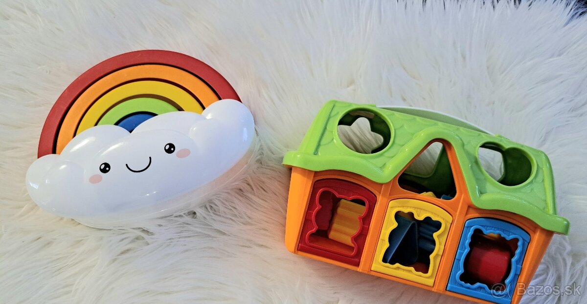 Detské hračky - [2.2. 2026]Predá 1x vkladačku kociek, drevené ovocie na učenie krájania, baby puzzle, 3x kniha.