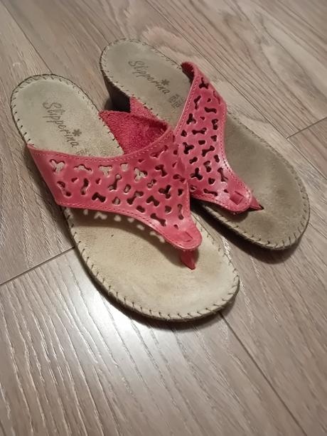 Šľapky červené kožené 37