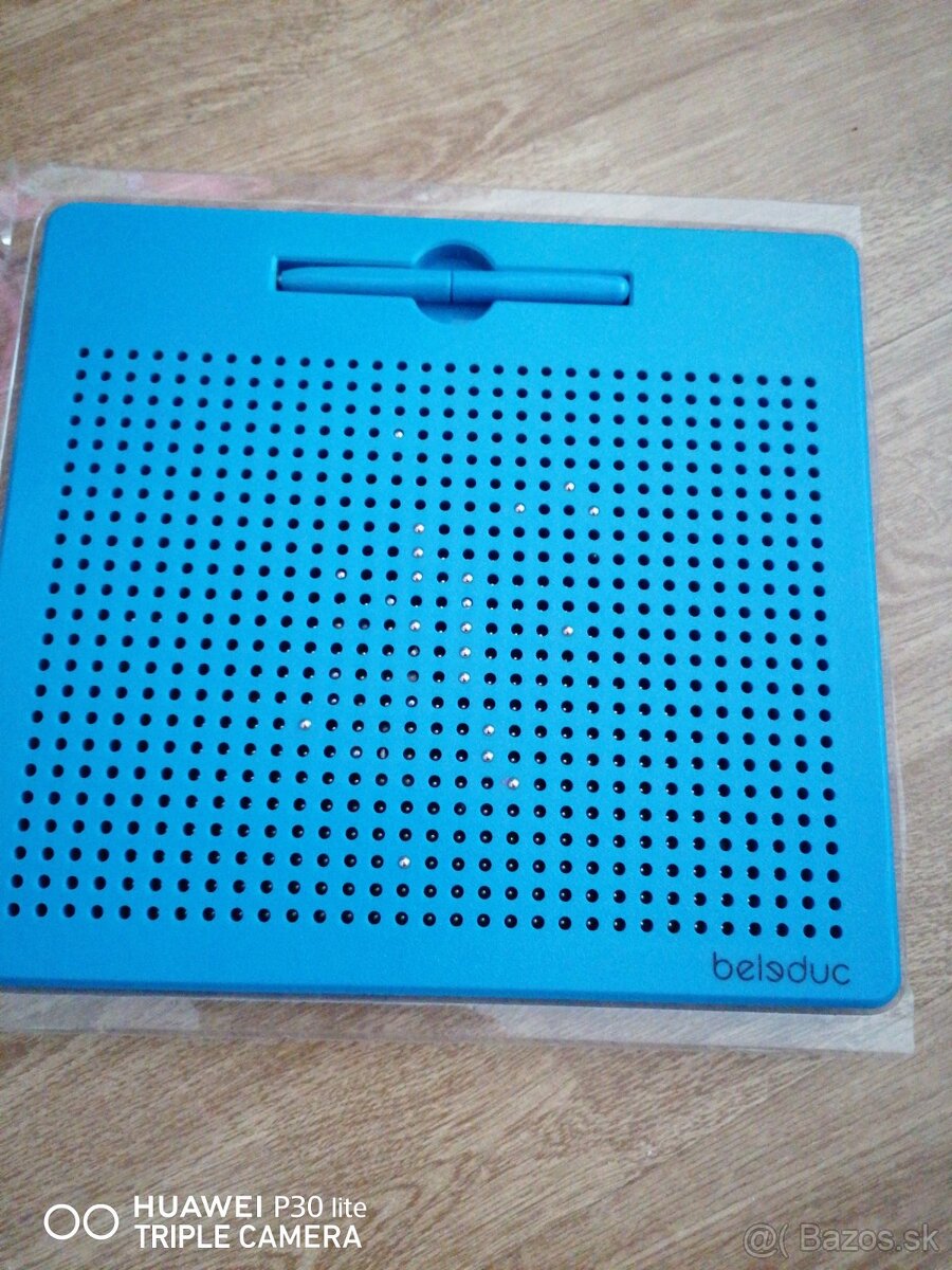 Bez poškodenia, magnetická tabuľa, s perom sa vyťahujú guličky, ktoré robia obrázok, veľkosť 25,5 x 28 cm