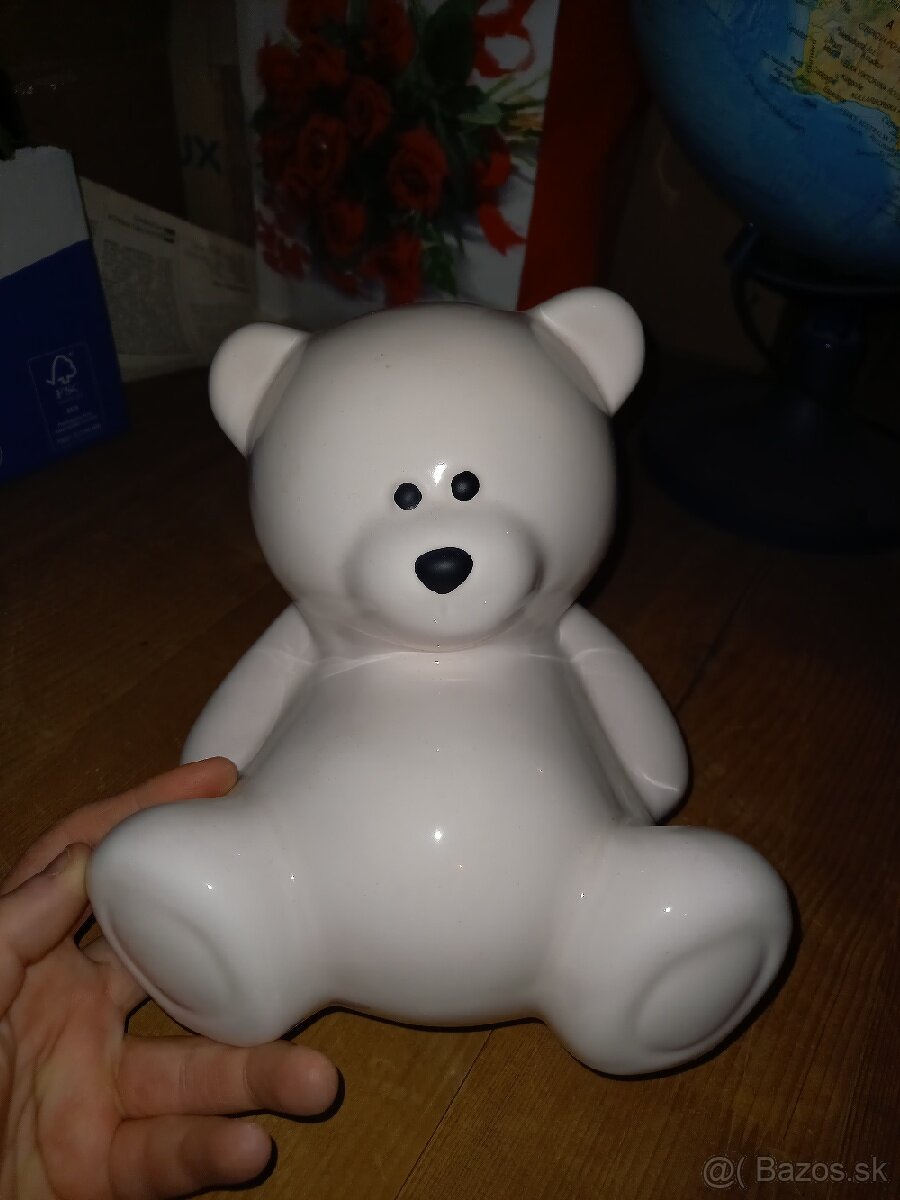 Predám krásneho macka pokladničku. Staroruzovej farby, keramická. Zospodu je gumený otvor. Cena plus postovne. Vhodné pre detičky ako darček. V prípade záujmu ma kontaktujte cez mobil.