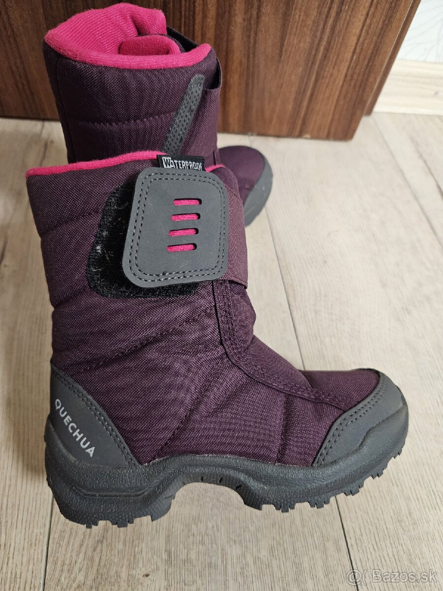 Zimne snehule Quechua 36 - [21.1. 2026]Predam zimne nepremokave cizmy znacky Quechua vo velkosti 36, kupovane 12/2024 v Decathlone, nosene len mojou dcerou pocas 1 zimy na striedacku so zimnymi topankami. Velmi dobry stav, bez poskodeni, len suchnutia najma na vnutornej strane podrazky.