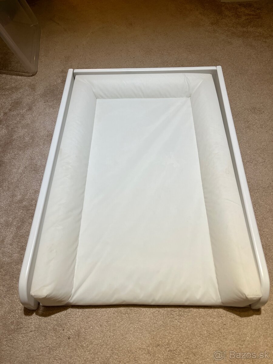 Predam na mieru robeny ram na prebalovaciu podlozku, vratane prebalovacej podlozky Ikea, namontovatelne na lubovolnu komodu (pripadne na prilepenie, na obojstrannu pasku, docasne). Iba osobne Nizny Klatov