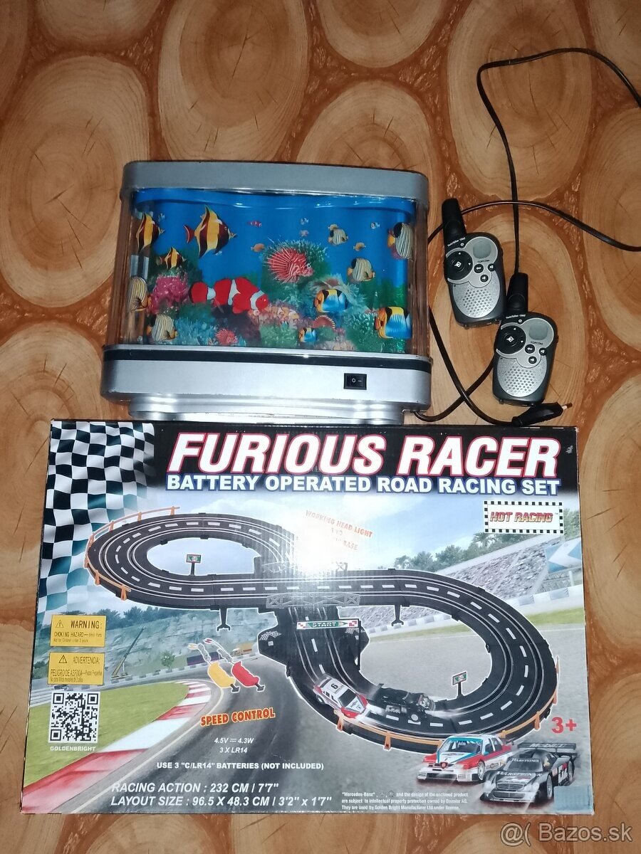 Predám funkčne elektrické dedské auto na diaľkové ovládanie nabýjaťelne pomocou adaptéra.+pridám autodráhu funkčnu na tuškové batérie+pridám funkčnu lamu akvárium.+pridám vysielačky funkčné akurát jedná pri zvonení šušti+pridám boby.Som z okolia Prievidza