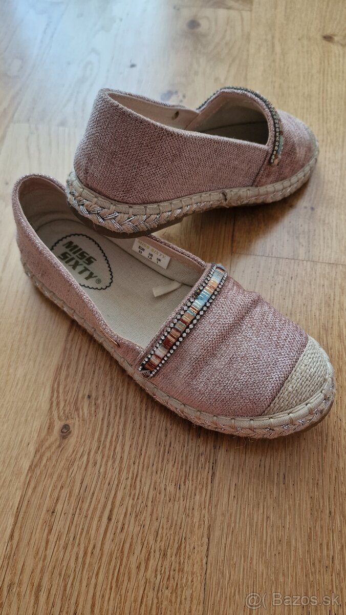 Predám krásne espadrilky, farba staroružová, zn.Miss Sixty, veľkosť 33, dovoz z Talianska, vhodné aj na užšiu nôžku, pár krát obuté.