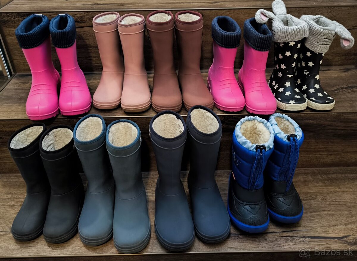 Predám zateplené (ovčia vlna) gumáky Enfant (15€) veľkosť 28 - 32 vnútorná dĺžka ( tmavé 17, 20, 21, 22) (ružové 17.5)