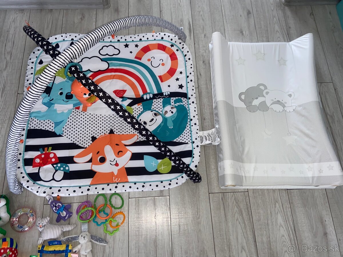Hrazdička pre babatko , je k nej svietiaca a hrajúca vydra , pridám aj krúžky na zavesenie iných hračiek a aj nejaké hračky čo nám ešte zostali , super sa udržuje stačí hodiť do pracky zachvíľku je sucha