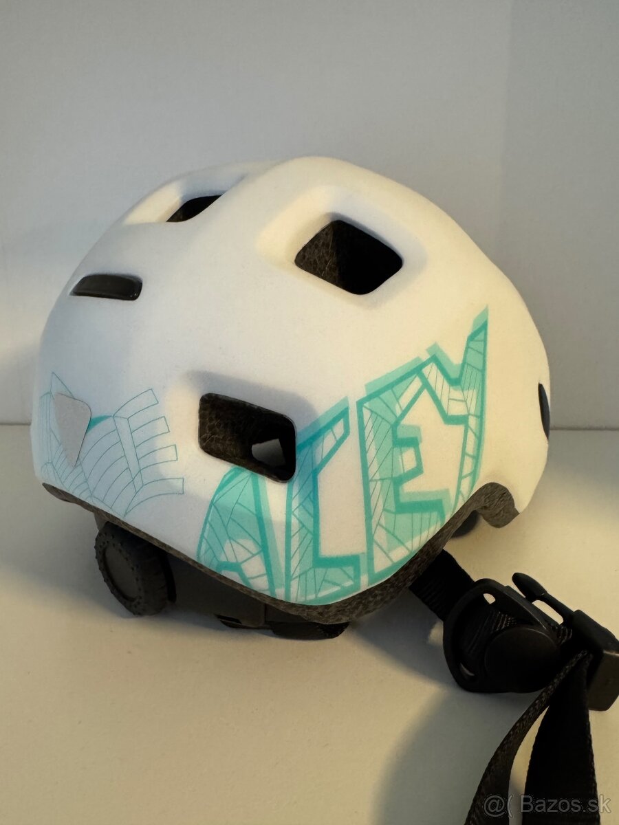 Kellys ACEY 022 v bielom prevedení – detská cyklistická helma s 10 ventilačnými otvormi, nastaviteľným pásikom a reflexnými prvkami pre bezpečnejšiu jazdu pre najmenších cyklistov.