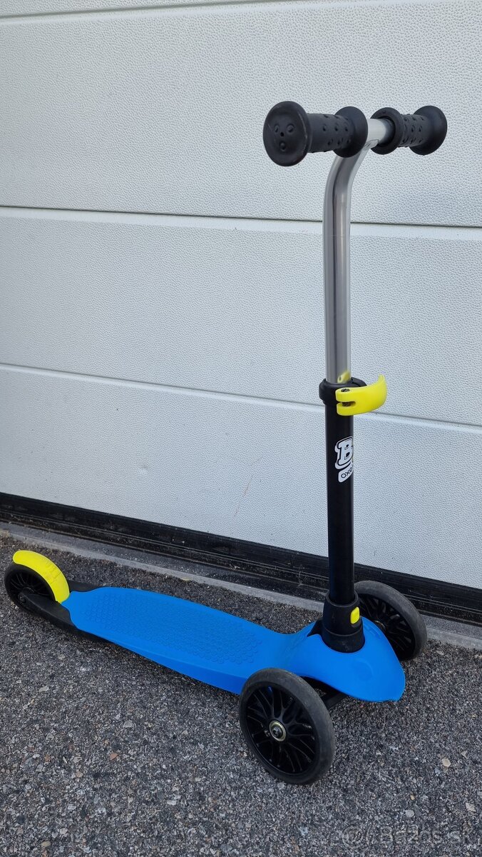 Tmavomodrá detská kolobežka OXELO, idálna na prvé kolobežkovanie, doma aj vonku. Veľmi dobrý stav.