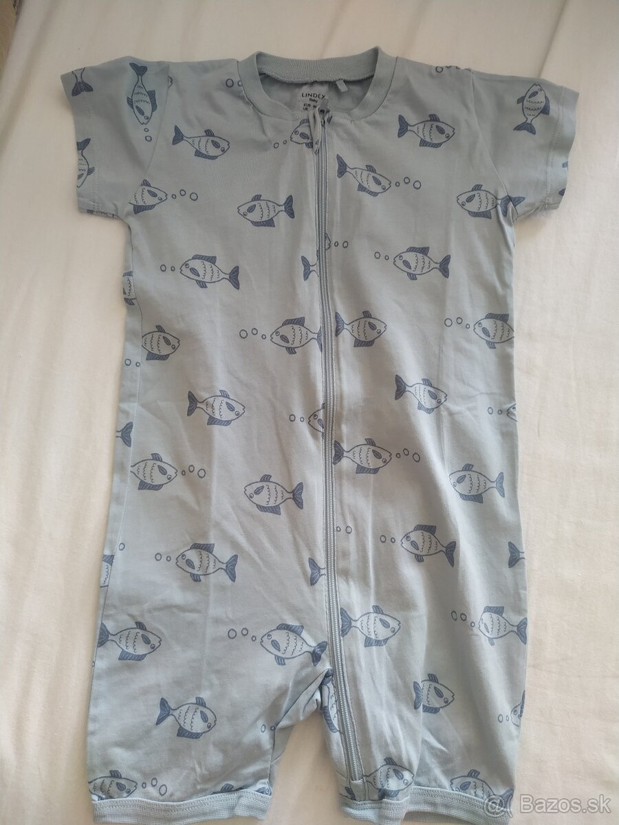 Uplne novy, len vypraty overal 12-18mesiacov. Sivo modry s rybickami.