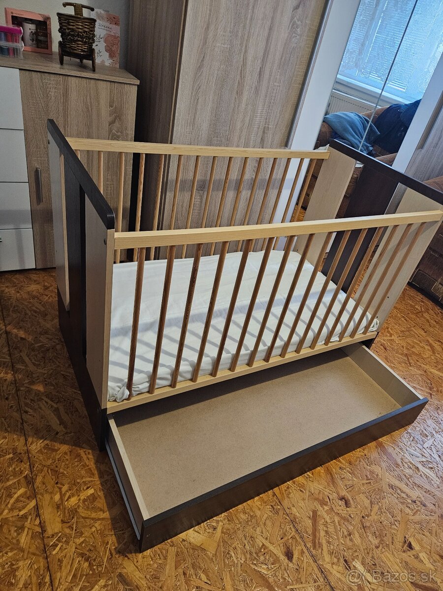Detská postieľka - [25.1. 2026]Predám detskú drevenú postieľku s matracom so stvormi plachtami 4x návliečky paplonom a vankušom + závesný organizér na postieľku.Rošt sa dá polohovat na 3 výšky bočná strana sa dá spustiť nižšie pre lepšie odobratie dieťaťa.Len osobný odber.