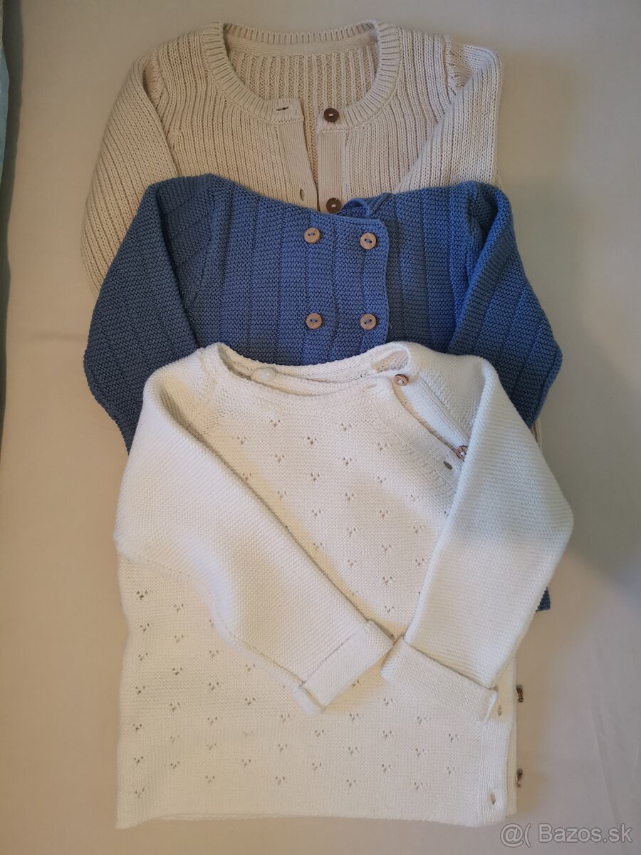 Predám 3ks svetríky z obchodu Tchibo veľ. 86/92 (1-2 roky). Materiál 100% bavlna, mäkučké, jemné, nikdy neboli nosené. Osobný odber Nitra alebo cena+poštovné.