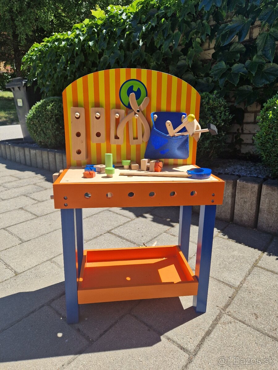 Nový retro dielenský stolík pre deti - [23.12. 2025]Drevený stolík s náradím pre deti v retro dizajne. Úplne nový, ešte zabalený a nikdy nerozbalený v pôvodnej škatuli, takže vhodný ako darček. Podporuje rozvoj jemnej motoriky.