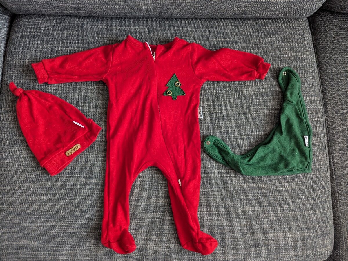 Vianočný overal, čiapka a podbradník, veľkosť 62