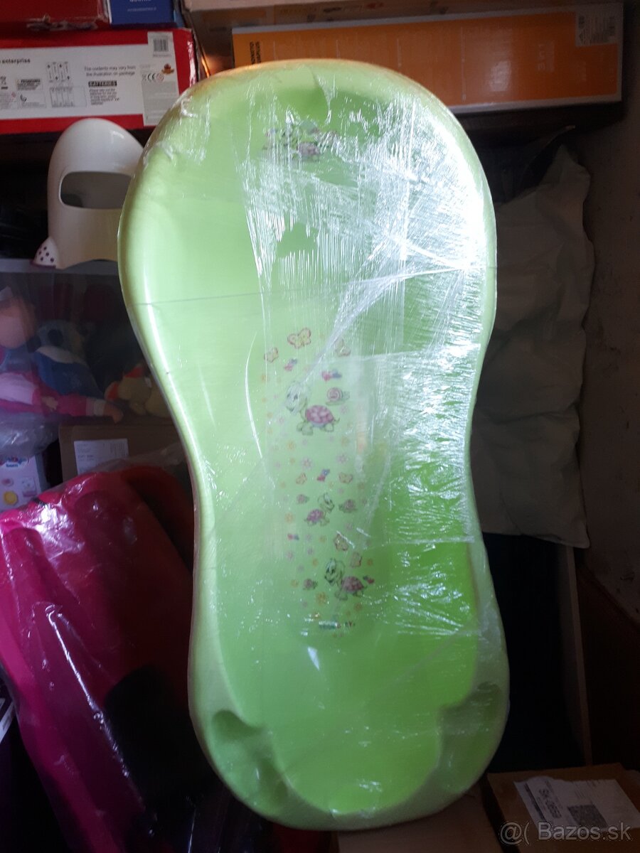 Detska vanička - [25.1. 2026]Predám detskú vaničku s lehátkom, rok používanú, s menším nedostatkom (chýba protišmyková podložka a poškodená vypúšťacia zátka, viď foto), nemá ale vplyv na ďaľšie využitie/netečie.