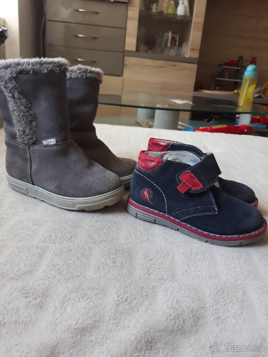 Predám teplučké čižmy značky pepino z brúsenej kože, málo nosené, top stav, vnútorná dĺžka 14,5cm, vnútorná šírka v strede 5cm, zapínanie na zips z vnútornej strany a predám prechodné topánky značky canguro z brúsenej kože vhodné na suchú jar/jeseň. Topánky sú vo veľmi