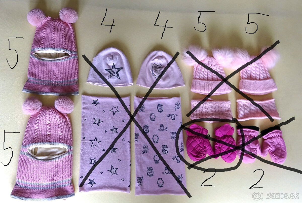 Ružové čiapky s dvoma brmbolcami a nákrčníkmy - veľkosť 98- predané
