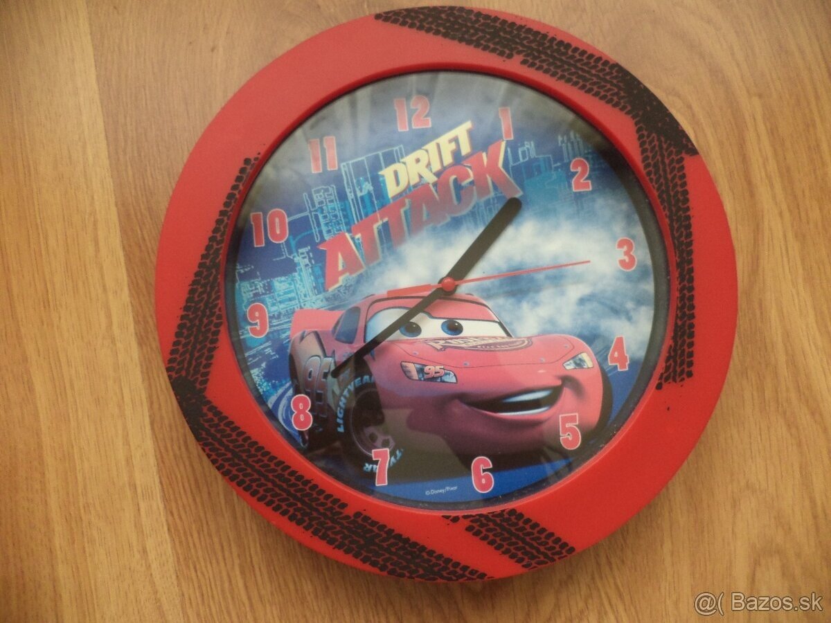 predám funkčné plastové nástenné hodiny MC Qeen červenej farby s autom do detskej izby, TOP stav . Priemer hodín 24cm, prosím kontaktovať len na e-mail, Cena +poštovné.