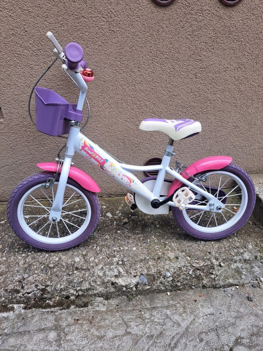 Predám dievcensky bicykel,veľkosť 14. Pomocné kolieska k tomu sú tiež