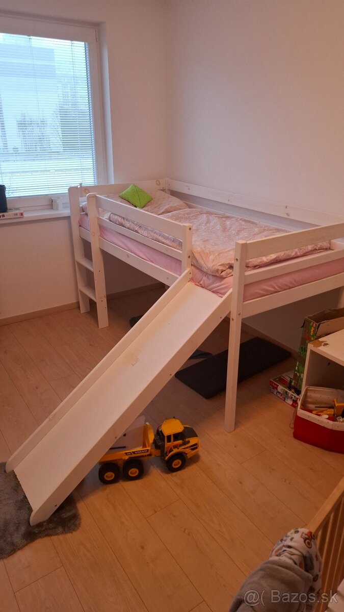 Predám cca 4 roky používanú posteľ so šmykľavkou. Bez matraca.