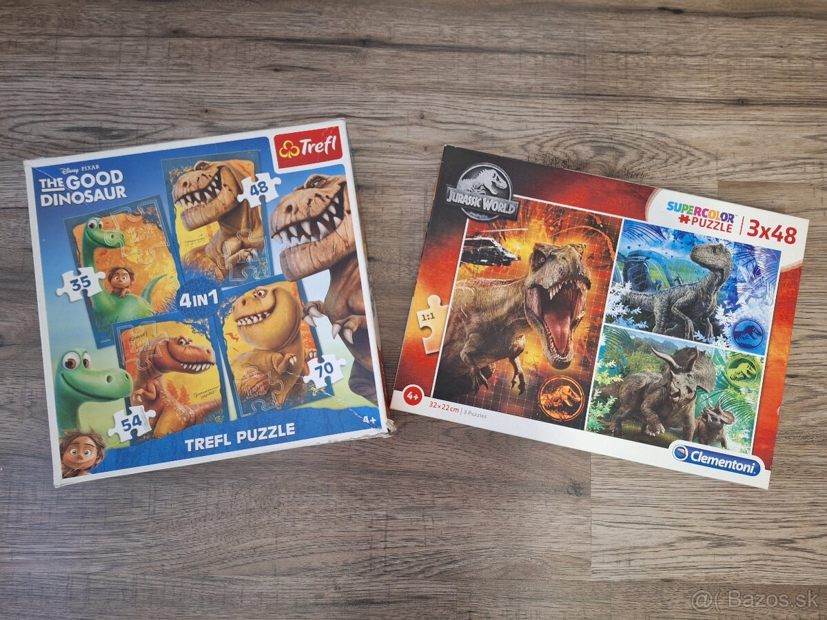 Predám puzzle dinosaury, kompletné nechýba žiadny dielik viď. foto, zn. Clementoni 4,-€, zn. Trefi 3,-€.