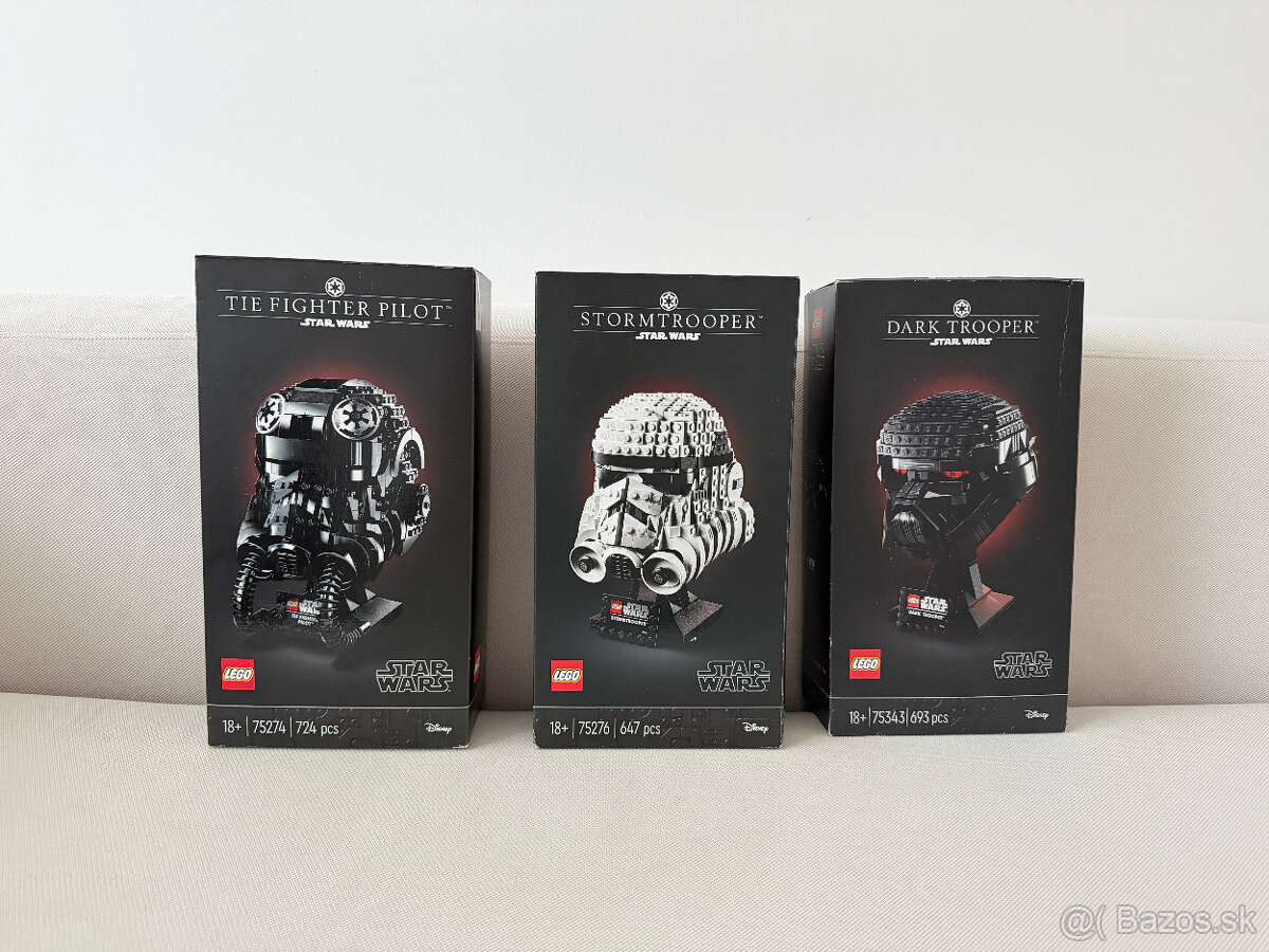 set 75274 LEGO Star Wars Helmet Collection TIE Fighter Pilot + 75276 LEGO Star Wars Helmet Collection Stormtrooper + 75343 LEGO Star Wars Helmet Collection Dark Trooper Helmet