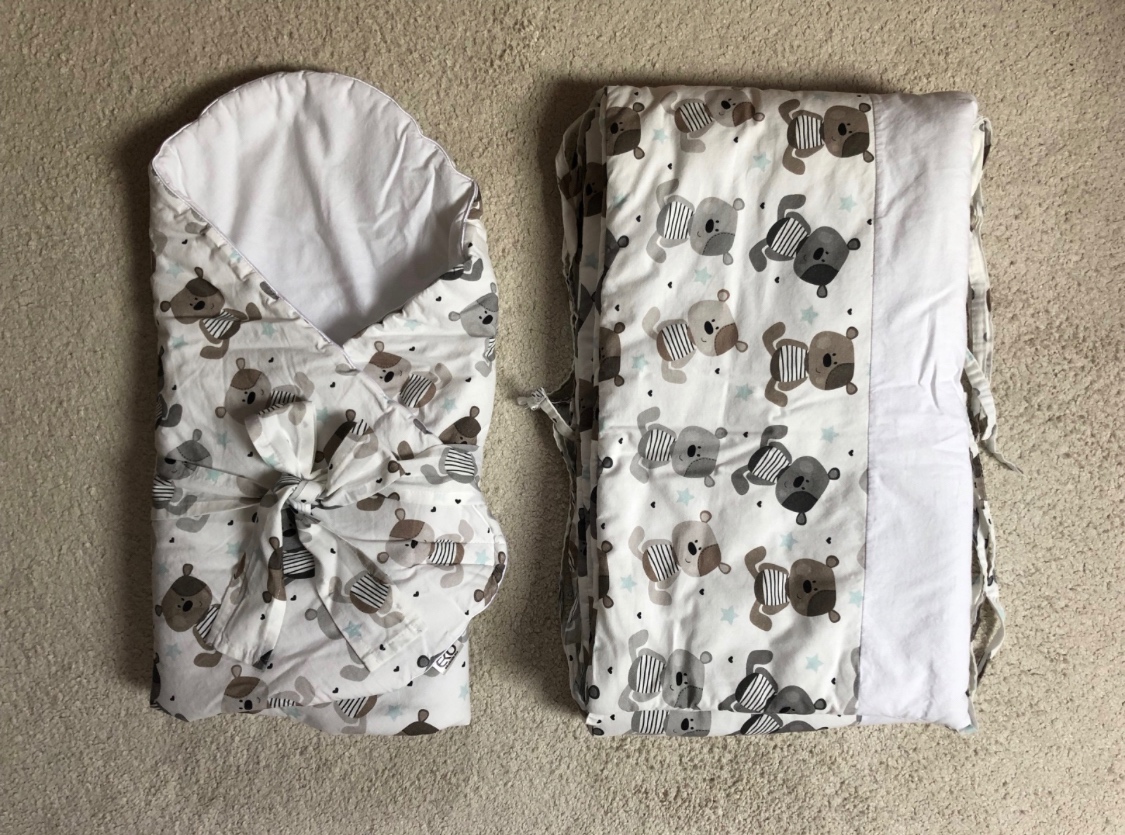 Predam zavinovacku a ochranny mantinel do postielky z rovnakej serie s motivom medvedikov, kupovane v obchode predeti.sk, info vid nizsie.