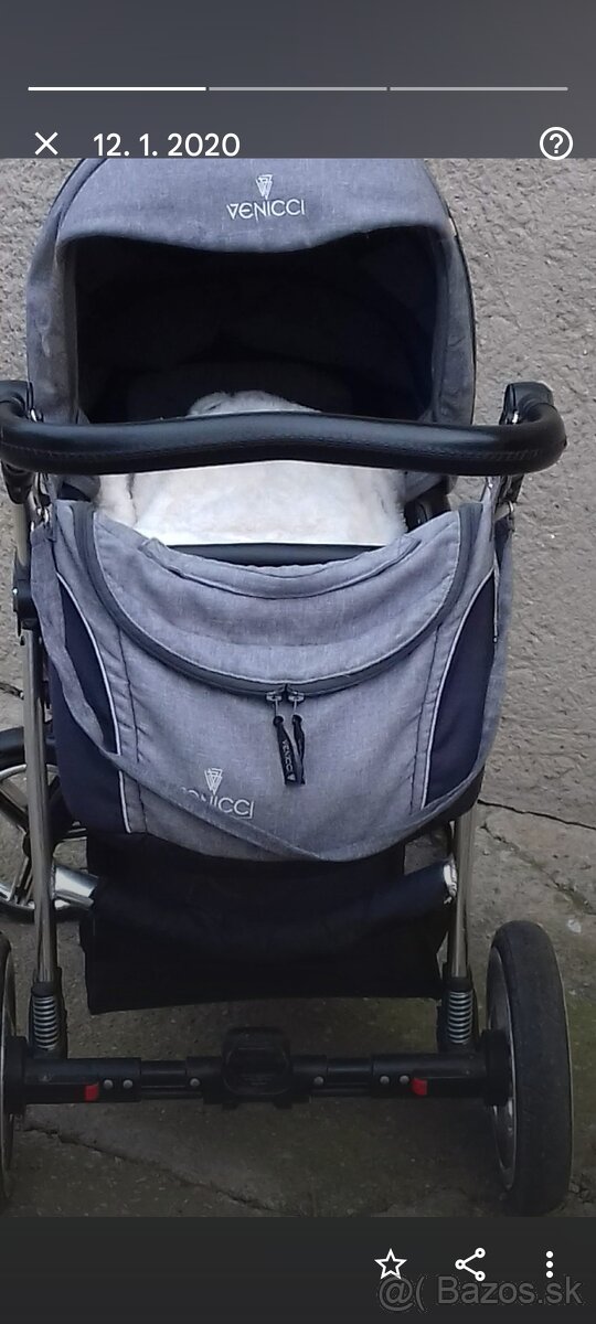 Predám šedý kočík Venicci Silver, zachovalý, bežné známky opotrebovania. Cena dohodou. Len osobný odber ZM.