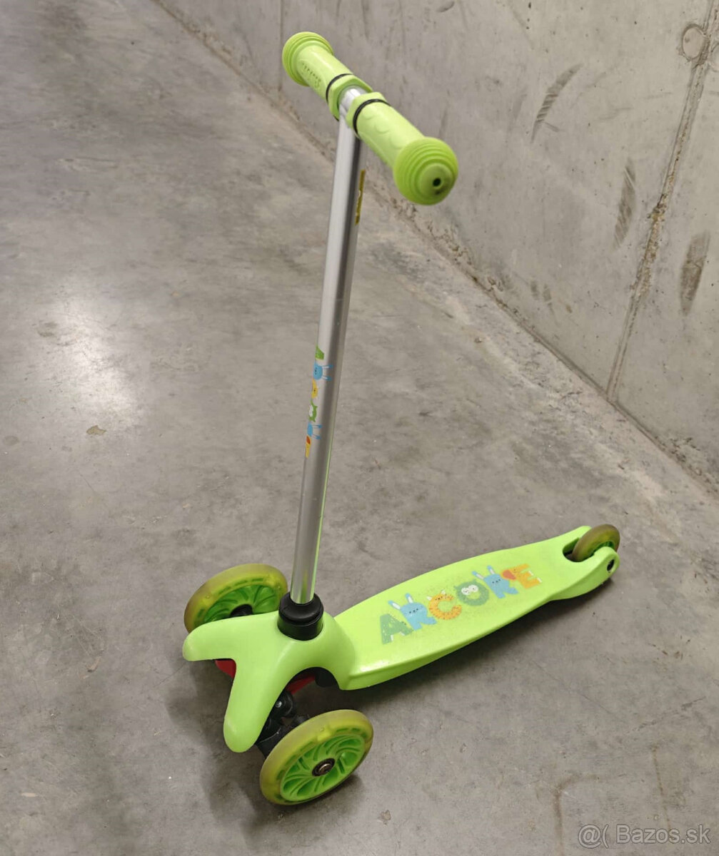 Detska kolobezka Arcore Triscoot so svietiacimi kolieskami. Je pouzivana, ale nadalej funkcna.