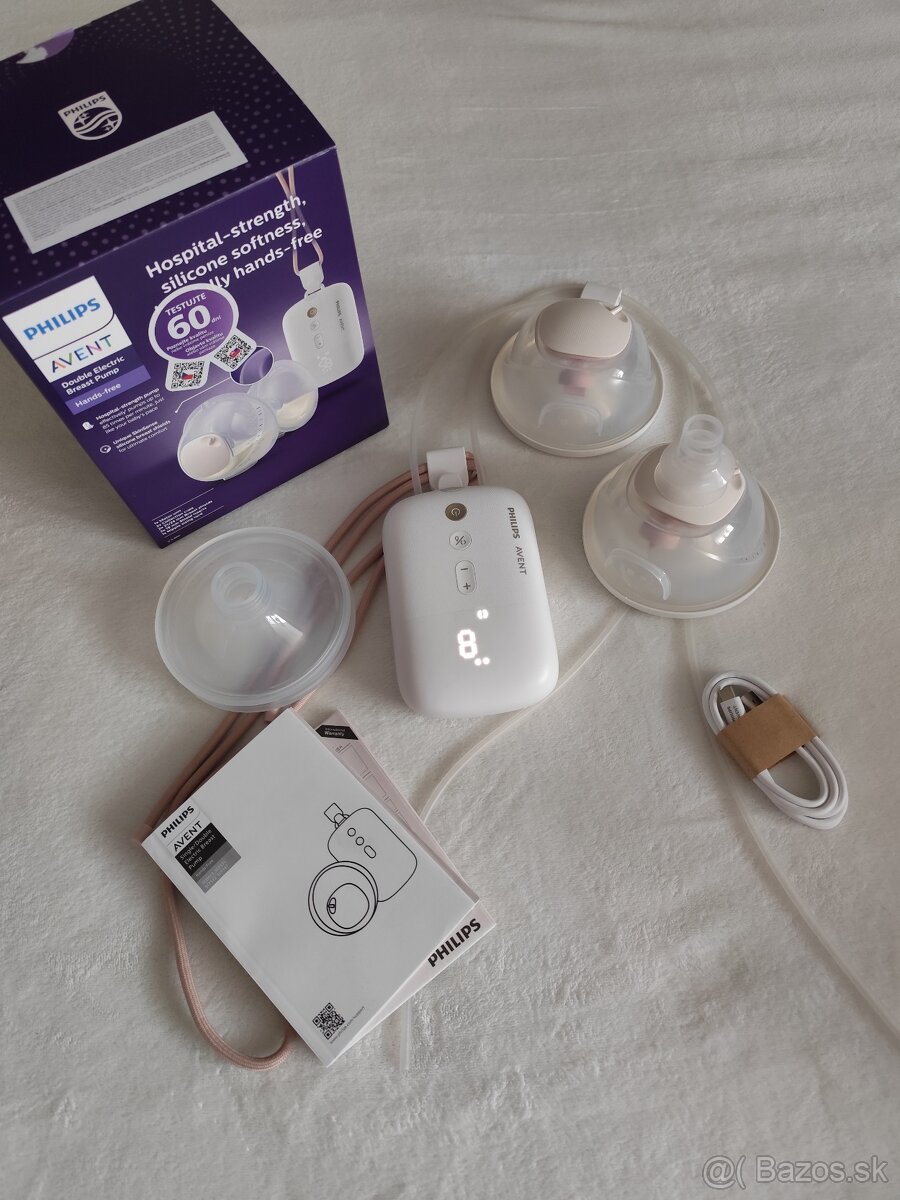 Balík obsahuje: USB kábel, motorová jednotka, 2x vložka na zber mlieka (19mm), 2x silikónová podložka (24mm), 2x mušľa na zber mlieka (21 mm), 2x protiprachové kryty, 2x silikónová hadica, nosná šnúra, spoj k hadičke
