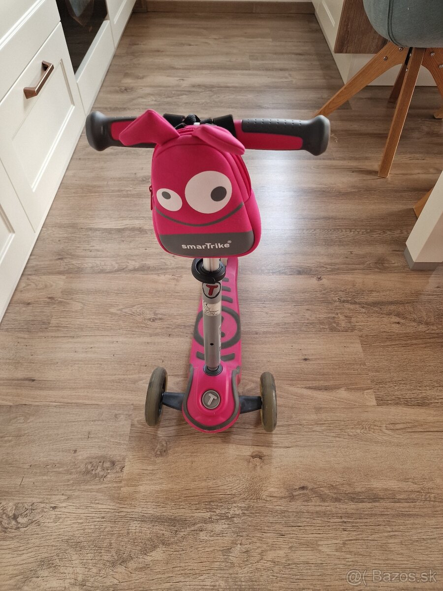 Možnosť použitia 3 spôsobmi: 1. sediac 2. stojac 3. pre zložitejšie kúsky aktivovaním T-Lock. Vďaka tejto funkcii sa deti môžu ľahko naučiť používať kolobežku. Svietiace predné kolesá pre štýlový vzhľad a bezpečnejšie večerné kolobežkovanie sa.