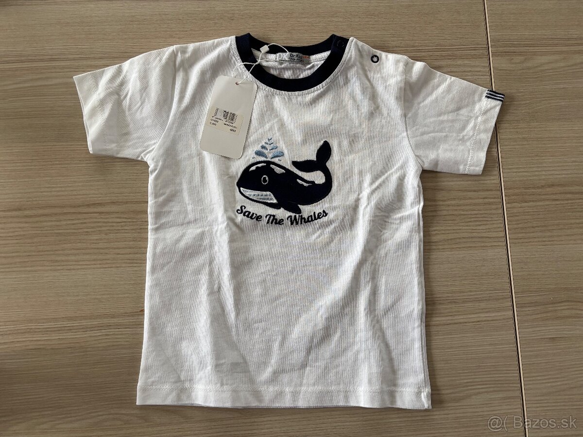 Predám tričko s krátkym rukávom, zn. Dr.Kid, biele s veľrybou. Nové, s visačkami. Veľkosť 4 roky (cca 110-116).