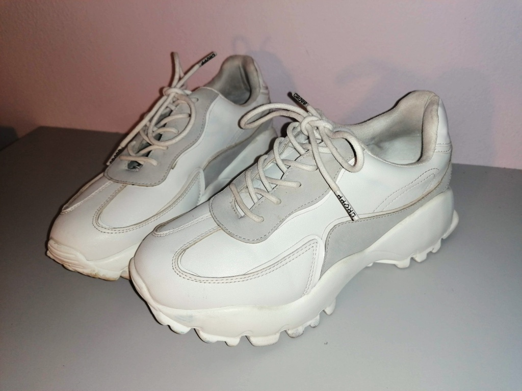 Predám veľmi zachovalé biele detské dievčenské tenisky Cropp Freaky, syntetický materiál, veľkosť 37. Som zo ZA. Ak inzerát čítate, je aktuálny. Reagujem aj na SMS a E-mail, okrem otázok na aktuálnosť inzerátu a podobných "nahodených udičiek" podvodníkov.