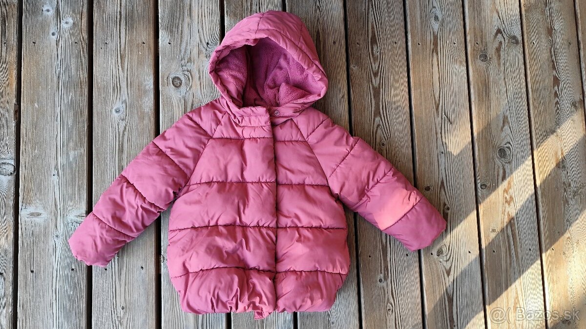 Velmi tepla zimna bundicka, vhodna do tuhej zimy. uvedena velkost 110, ale dcerka nosila uz ako 104. V top stave, bez poskodeni, nosena na striedacku, len ked bolo velmi chladno.