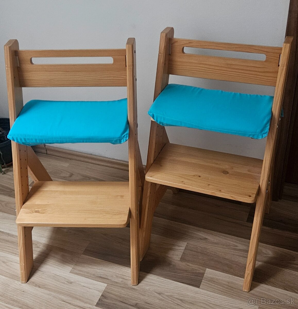 Predám 2x rastúca stolička. Veľa možností nastavenia, takže sa dá používať veľa rokov. Sú z masívneho dreva.