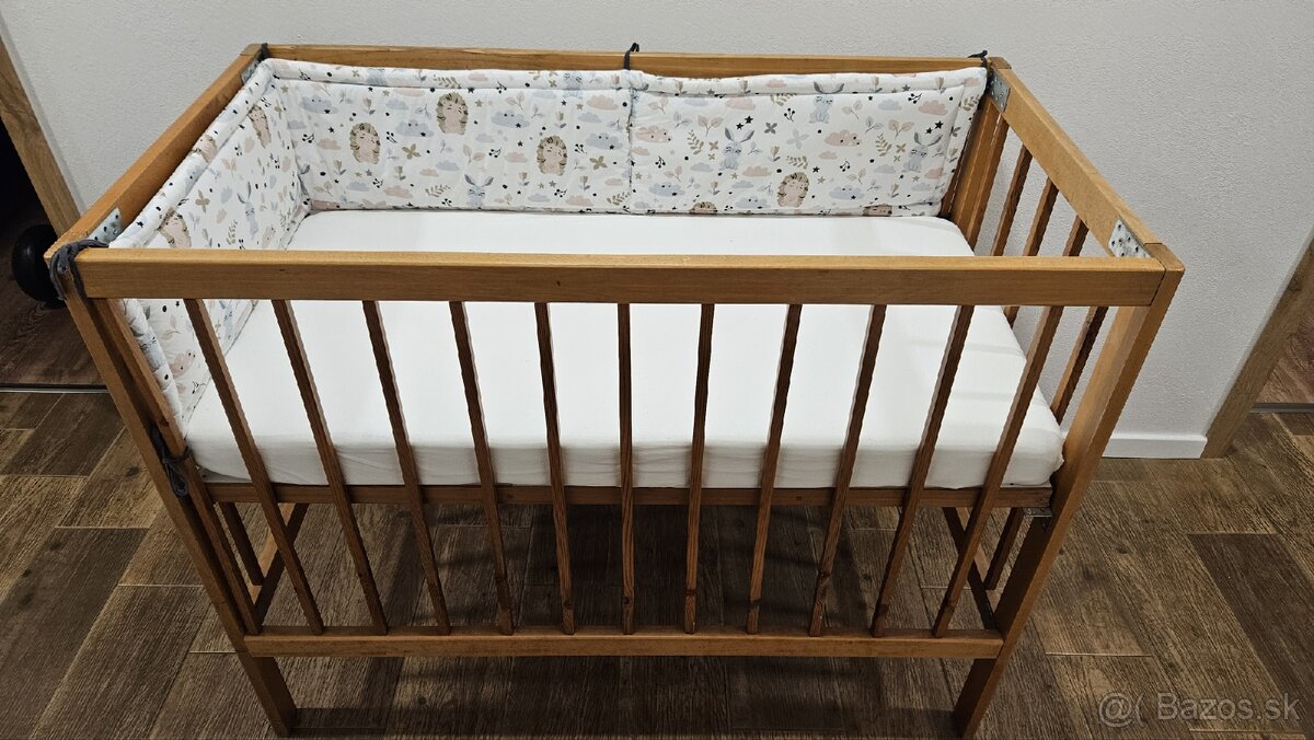 Predám detskú postieľku komplet ako na fotkách. Postieľka je z dreva, ručne robená, samozrejme má už nejaký ten rôčik ale stále dokáže poslúžiť. K postieľke dávam aj matrac. Matrac je úplne nový, použitý max. 10 krát. Rozmery postieľky sú 120x80cm s dvoma možnosťami výšky matraca. Postieľka je aktuálne v stave ako na foto, viem ju qj rozložiť aby sa dala lepšie previezť. V prípade záujmu ma kontaktujte telefonicky. Cena je dohodou.